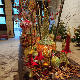 Nous avons pu découvrir le magnifique sapin de Noël dans l’entrée du château. Puis différentes décorations en parcourant le château : tables et cheminées décorées.